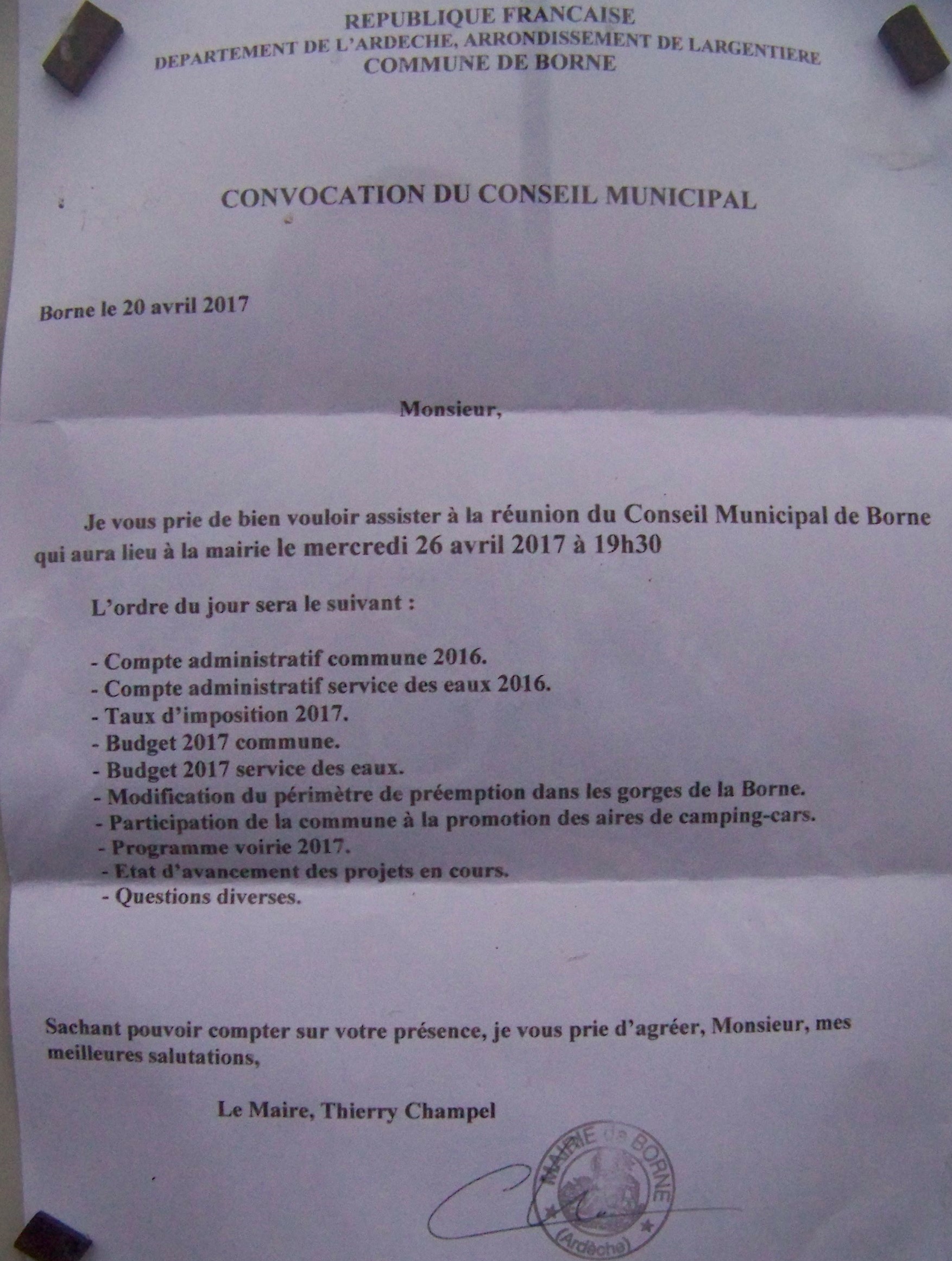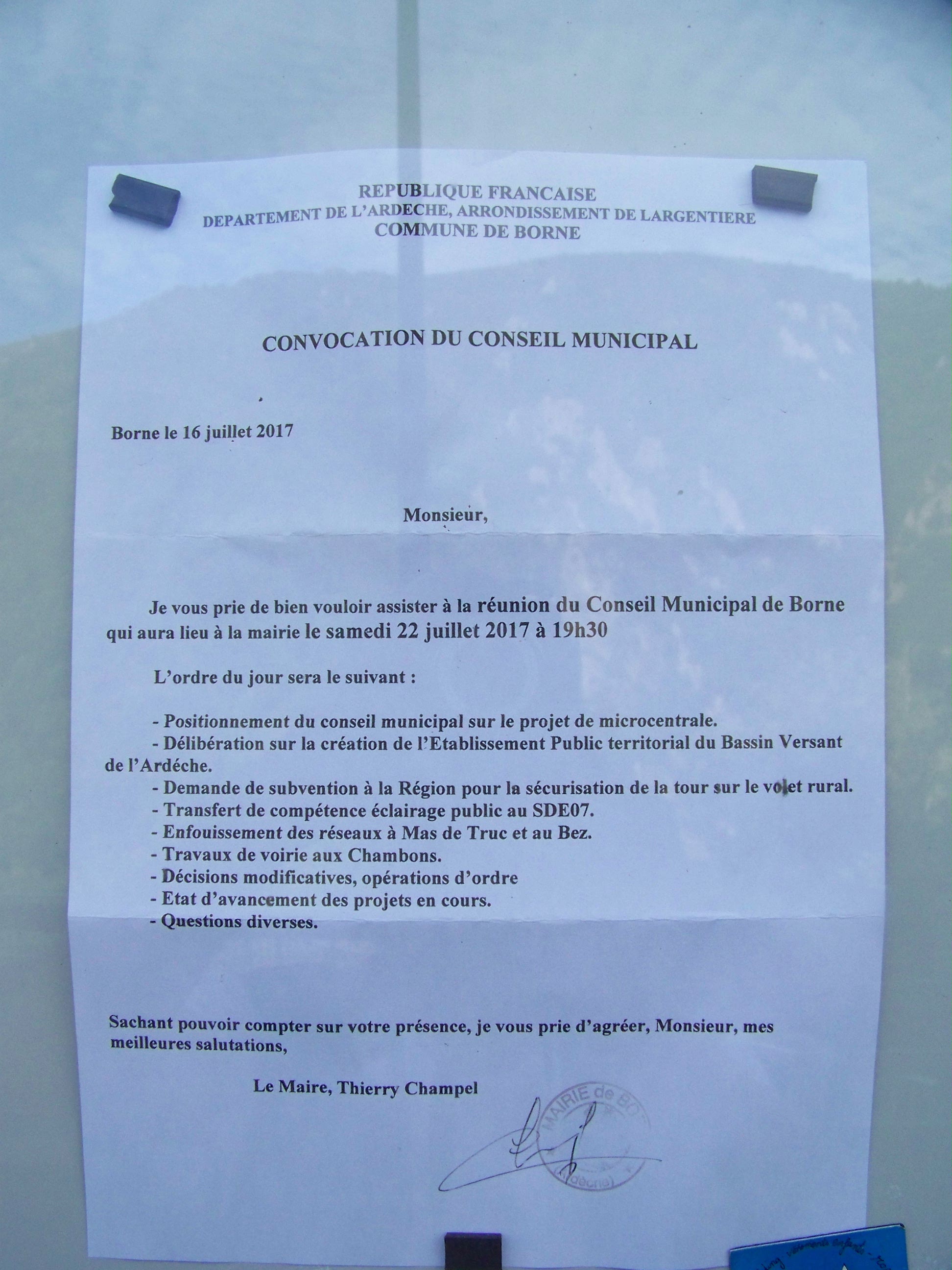 d'étude, chargé par la Commune de Borne du dossier d'adduction